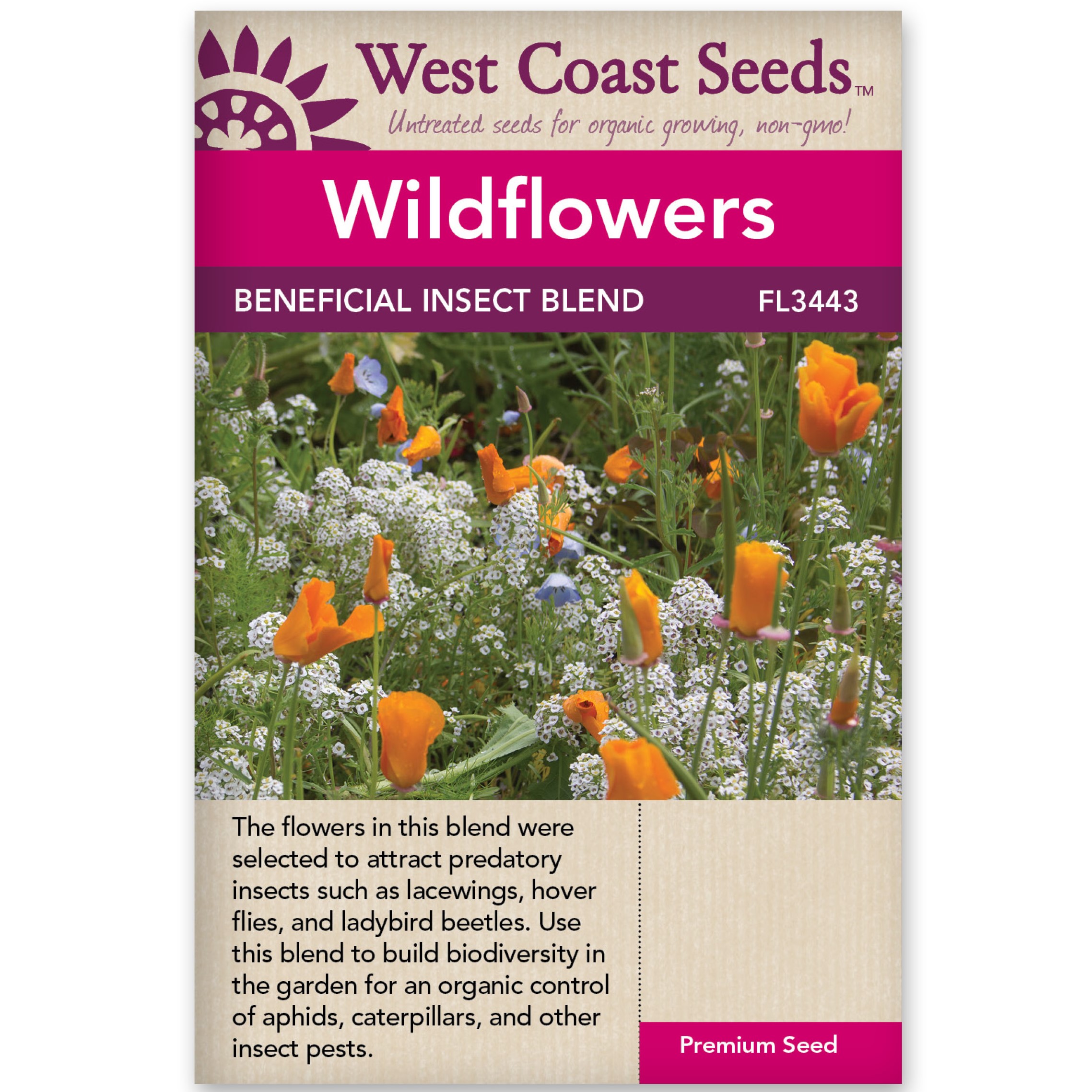 Different flowers attract different sorts of insects. The flowers in this blend of Beneficial Insect Blend wildflower seeds were selected to attract predatory insects such as lacewings, hover flies, and ladybird beetles. With a healthy population of these insects in your garden, pest species like aphids, thrips, and caterpillars will be controlled naturally. This blend also attracts generalist pollinators that will increase yields in fruiting plants from peppers to peas. Feeding a healthy and diverse insect population is the best general way to encourage garden health and control the insects that cause the most obvious garden problems.